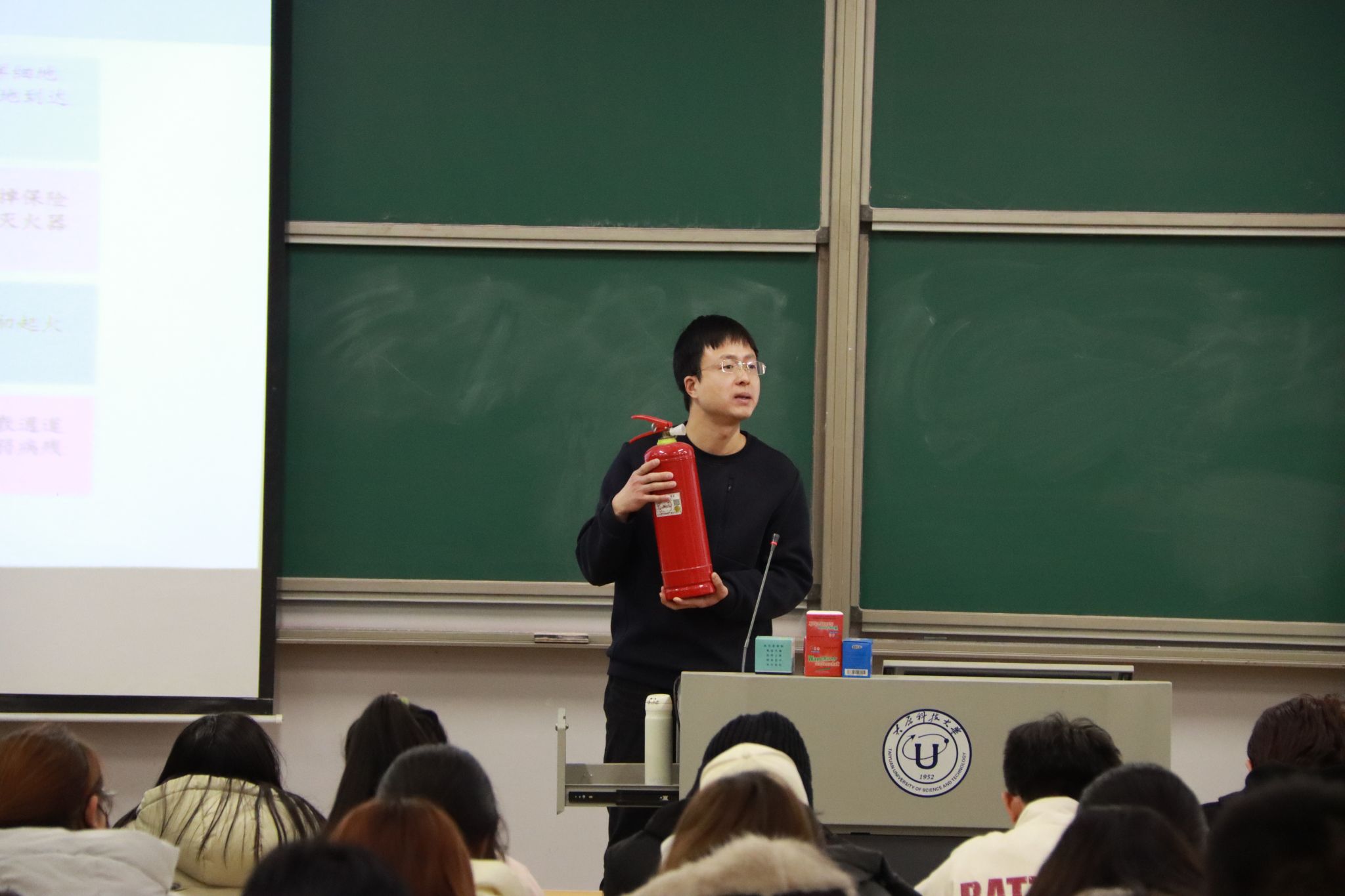 讲座中,张玮老师以高校真实火灾案例视频为切入点,重点剖析宿舍违规用电、实验室操作不当等常见安全隐患的危害,用触目惊心的事故后果警示同学们杜绝侥幸心理,牢固树立“安全第一、预防为主”的意识,现场简要介绍灭火器使用规范,帮助大家掌握火灾初期应对方法。在反诈教育环节,张老师聚焦校园高发骗局,针对“刷单返利”“校园贷”“冒充客服”等典型诈骗类型,通过真实案例还原诈骗全过程,引导学生牢记“不轻信、不转账、不透露”的反诈基本原则。
