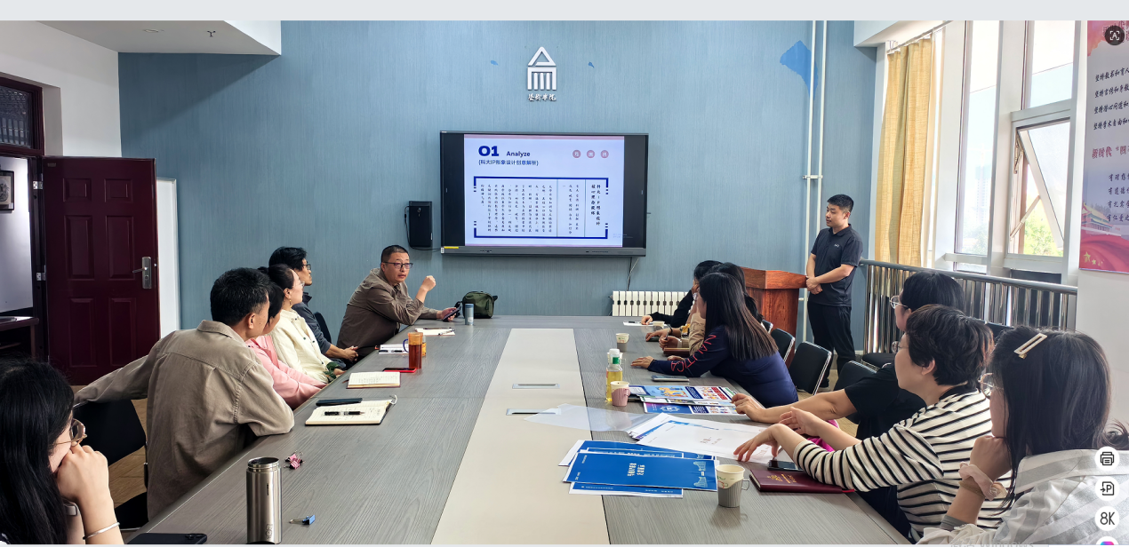 张慧朝、刘丽君、张英民三位老师围绕学校IP形象设计方案进行汇报,从不同角度对学校IP形象的设计理念与初步构想作了阐述。与会人员结合学校实际,针对提交的十余个设计方案展开交流研讨,并从文化内涵及受众定位等方面提出了修改意见建议。
