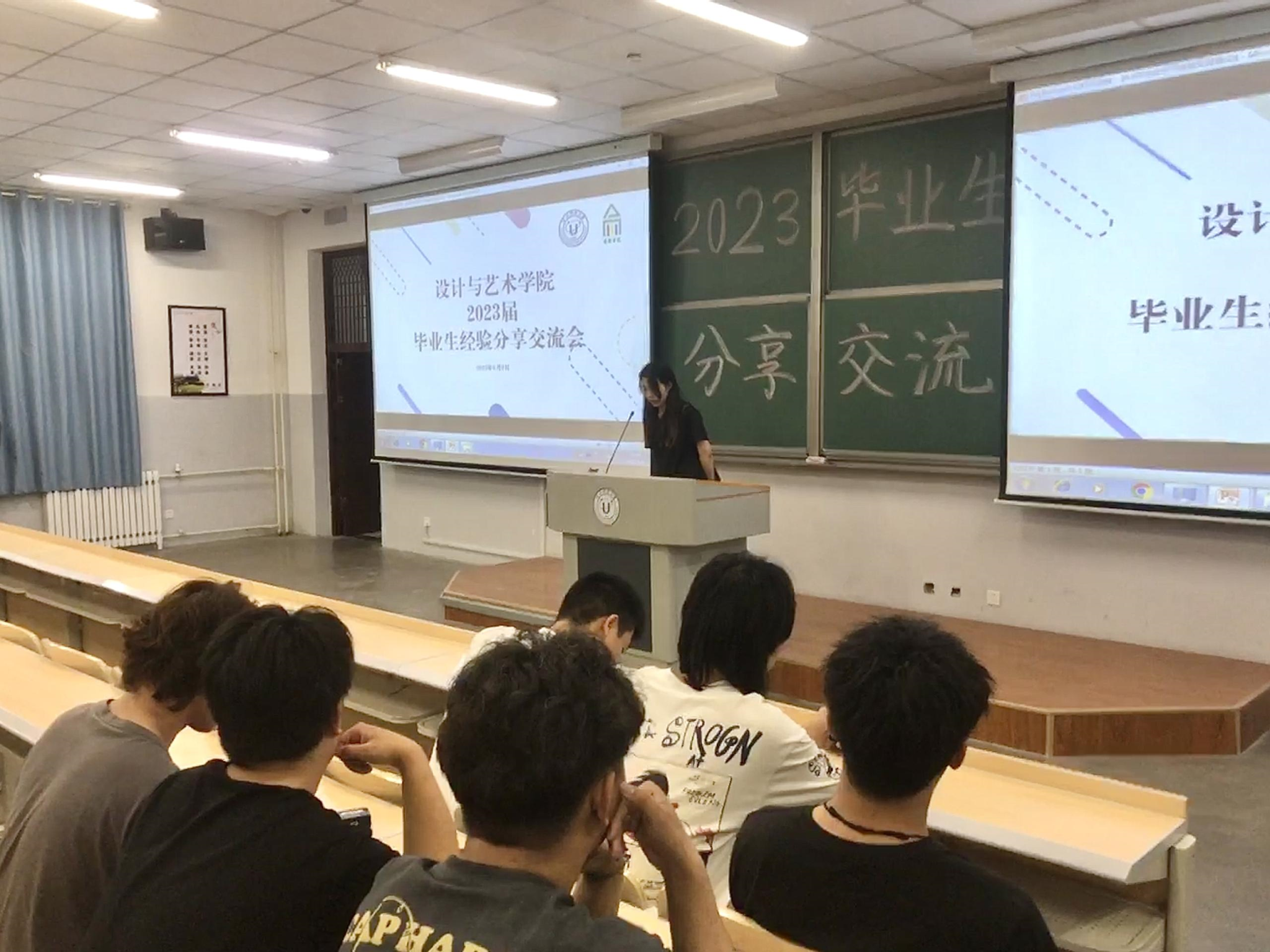 本科毕业生经验分享会过程中,刘昕玥及卢星辰同学就考研初试专业学习、复试准备、心态调整等方面分享了自己考研上岸的宝贵经验;张真龙同学针对公务员类考试从笔试经验、面试技巧等方面进行详细讲述;邢占磊同学从简历制作、作品集制作、企业面试等方面分享了求职攻略和经验;王展同学以大学生活规划、学科竞赛为主现身说法分享自己的奋进史,鼓励同学们抓住机会、勇于挑战、提升自身。